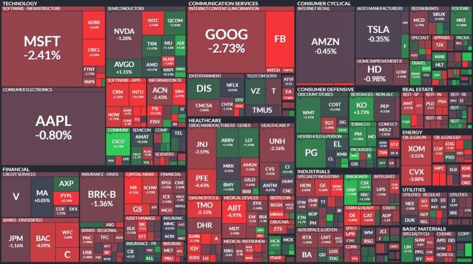 - 에너지, 커뮤니케이션, 금융 섹터 하락.